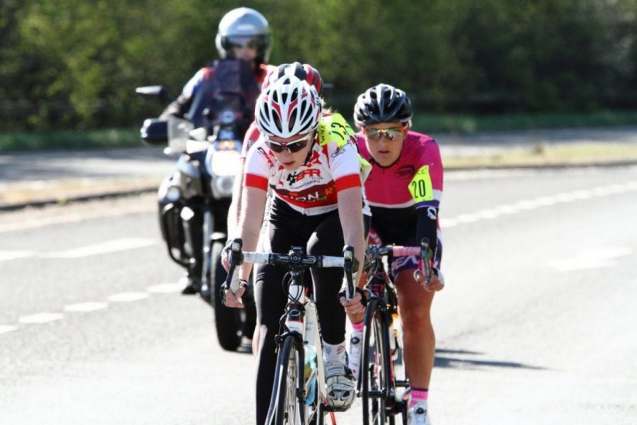 Back with the support of Delamere Dairies, Taylor Wimpy and new sponsor Advanced Medical Solutions amongst others, the race soon began to take form, with the first two riders Ellie Campbell (Fusion RT Gearclub Bike Science) and Katie Curtis (Pearl Izumi Sports Tours Int’l) making a break over the Cliff and back down to the Bypass. Bridging the gap Josephine Gilbert (Velosure Starley Primal) swiftly joined them with a thirteen second gap to the Peloton and completion of the first lap.